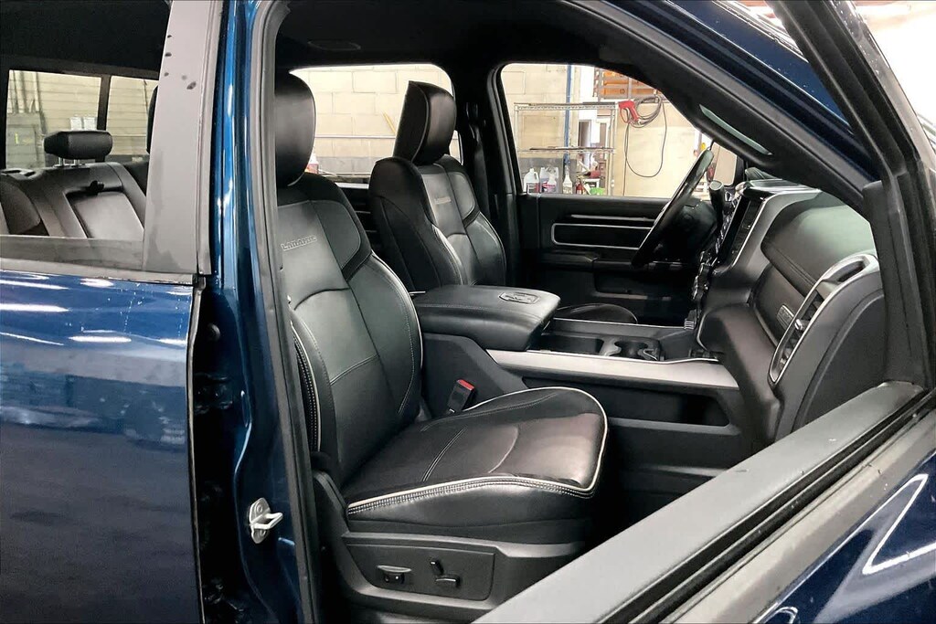 ENGINE: 6.7L I6 CUMMINS TURBO DIESEL Selective Catalytic Reduction (Urea), Dual 730 Amp Maintenance Free Batteries, Cummins Turbo Diesel Badge, Heavy Duty Engine Cooling, Supplemental Heater, 220 Amp Alternator, Tow Hooks, Diesel Exhaust Brake, Front Bumper Sight Shields, Capless Fuel Fill w/o Discriminator, NIGHT EDITION Mirror-Mounted Aux Reverse Lamps, Black Ram Head Tailgate Badge, Wheels: 20 x 8.0 Black Painted Aluminum, Black Wheel Center Hub, Black Headlamp Bezels, Body Color Door Handles, Painted Front Bumper, Painted Rear Bumper, Tires: LT285/60R20E OWL On/Off Road, Black Exterior Truck Badging, Exterior Mirrors w/Memory, Gloss Black Grille Billets/Accents, Body Color Grille Surround, Black Interior Accents, Black Exterior Mirrors, Black Tail Lamp Bezels, Power Black Tow Mirrors w/Convex Spotter & Memory, Power Adjustable Convex Aux Mirrors, LARAMIE LEVEL 1 EQUIPMENT GROUP Remote Tailgate Release, Auto High Beam Headlamp Control, Blind Spot & Cross Path Detection, Power Chrome Tow Mirrors w/Convex Spotter & Memory, Mirror-Mounted Aux Reverse Lamps, Exterior Mirrors w/Memory, Power Adjustable Convex Aux Mirrors, Rain Sensitive Windshield Wipers, Power Adjustable Pedals w/Memory, Foam Bottle Insert (Door Trim Panel), 2nd Row In Floor Storage Bins, Radio/Driver Seat/Mirrors/Pedals Memory, Ventilated Front Seats, RADIO: UCONNECT 4C NAV W/8.4 DISPLAY SiriusXM Traffic Plus, Disassociated Touchscreen Display, HD Radio, For Details Visit DriveUconnect.com, 1-Year SiriusXM Guardian Trial, GPS Navigation, SiriusXM Travel Link, BLACK, LEATHER TRIMMED BUCKET SEATS Bucket Seats, High Back Seats, #1 Seat Foam Cushion, Folding Flat Load Floor Storage, Full Length Upgraded Floor Console, ANTI-SPIN DIFFERENTIAL REAR AXLE, TRANSMISSION: 6-SPEED AUTOMATIC (68RFE) Chrome Accent Shift Control.